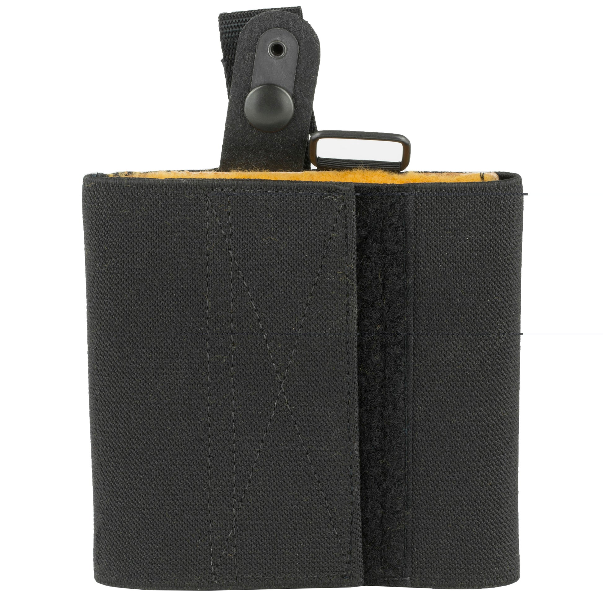 The Apaches wide, elasticized leg band largely eliminates the unwanted rocking motion commonly associated with ankle holsters. The Apache is made for small, medium and large frame semi-autos and small frame revolvers. All semi-auto models feature an adjustable Velcro thumb break. Revolver and .32cal holsters feature an adjustable thumb strap (without snap, Velcro closure). Designs may vary. Available in black. Semi-auto and revolver holster models are constructed with elastic and have a sheepskin lining with a snap thumb break. The .32cal holster models are constructed of neoprene and feature a Velcro thumb break. Optional C14 strap accommodates semi-auto and revolver holster models only. This holster is to be worn on the inside of your ankle opposite to which hand you will draw your firearm with. A right-handed shooter will order a right-handed holster and it will attach to the inside of your left ankle.