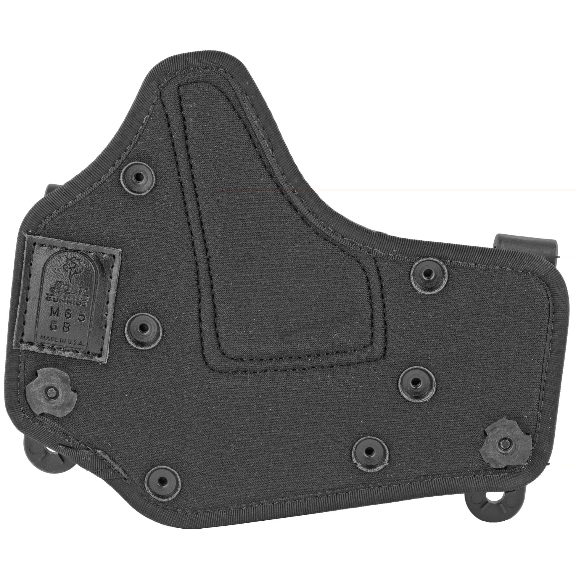 - Kydex front and edge bound neoprene, ballistic nylon and other synthetic materials backing IWB holster