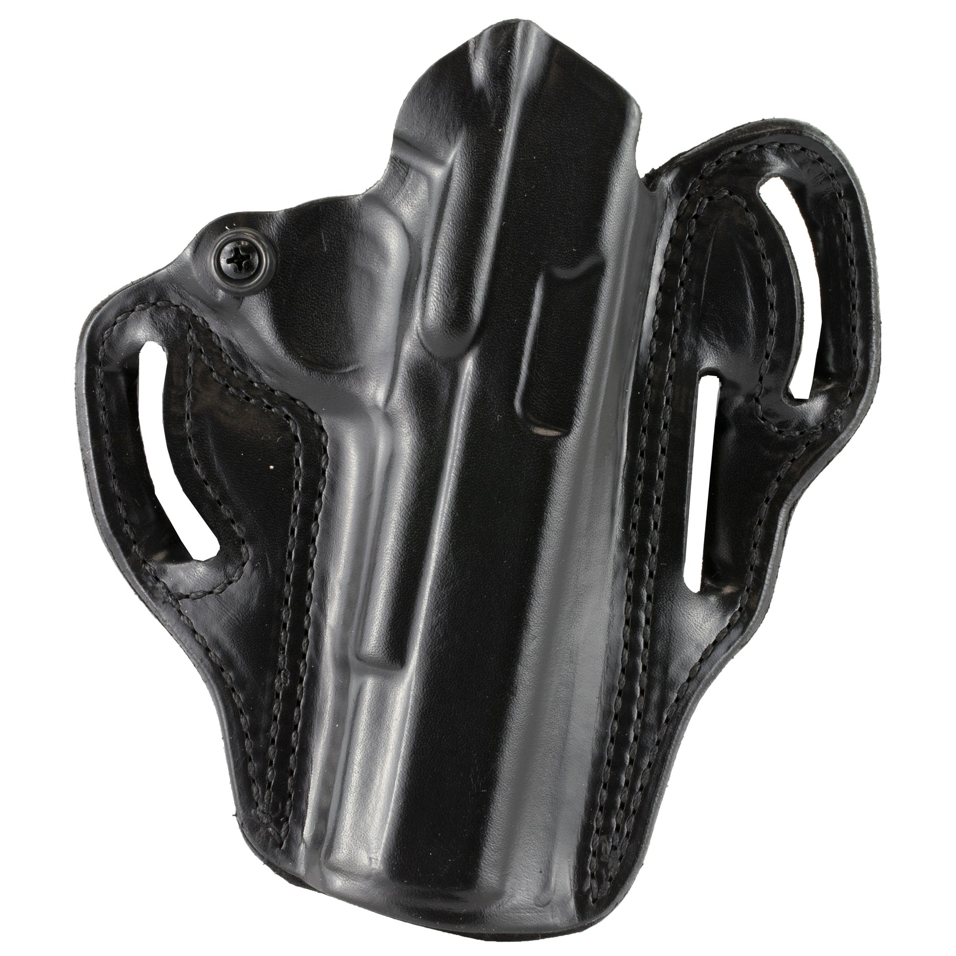 - Features three belt slots so you can have either straight up or a forward draw