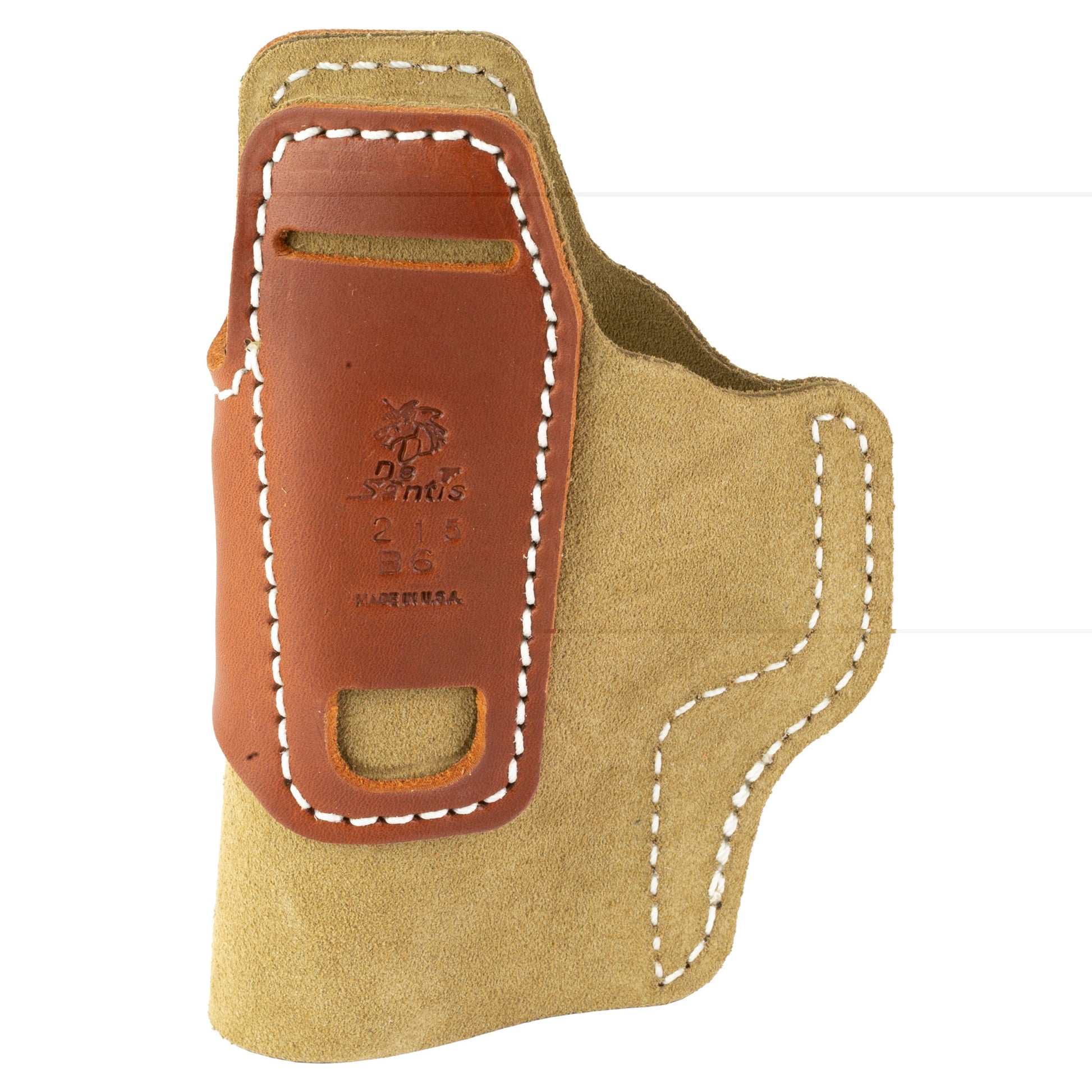 The #215" Transit Holster, is an old school IWB holster with a new school twist. It is built from firm, sueded center cut steerhide and reinforced at the top with both Kydex and premium saddle leather to aid in easy re-holstering. The holster also has a heavy-duty spring steel clip which can easily be moved over to either side making this holster ambidextrous. Most models of the holster are red dot compatible.