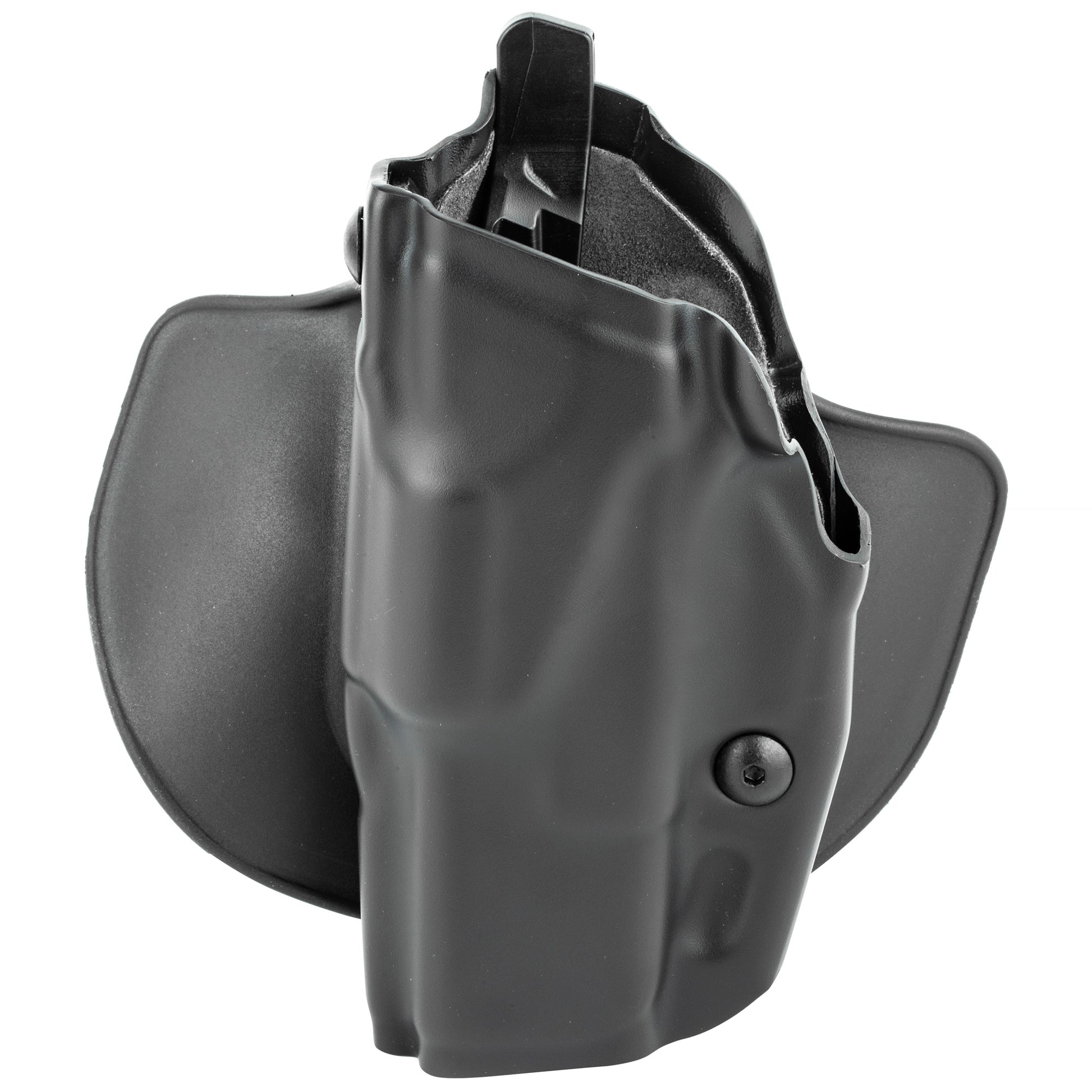 Safarilands patented Automatic Locking System (ALS) holsters are a top choice of law enforcement professionals. Once the weapon is holstered, it locks into place, providing an extra measure of security from standard open top holsters. A simple straight up draw is possible once the ALS is de-activated by the thumb while obtaining a shooting grip. The Model 6378 holster features an all-new injection molded paddle design that is highly concealable and rides close to body with a slightly forward weapon cant. It also comes standard with the 567BL belt loop, fitting 1.5" to 1.75" belt widths. Additionally, it features suede lining to help protect the guns sights and finish, and its SafariLaminate structure with wraparound design provides the strongest design combination available.